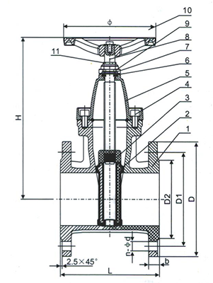 | 6 | Valve stem | stainless steel | 13 | Handwheel | cast iron |