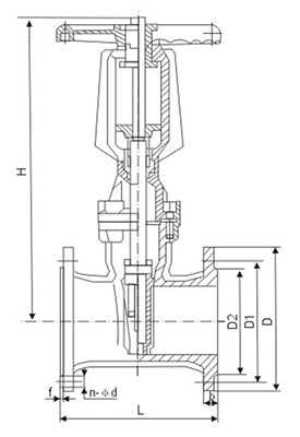 Z41X Rising stem soft seal gate valve main dimensions of connection