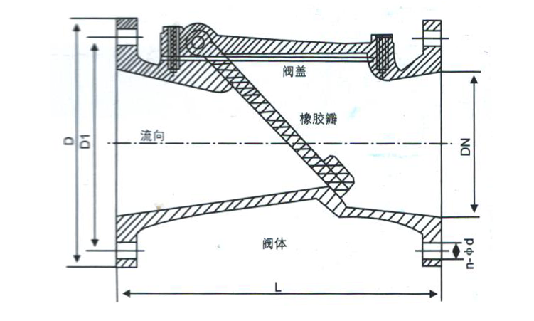 H44X(SFCV) Rubber Disc Check Valve main dimensions (flange connection size according to the provisions of GB4216)