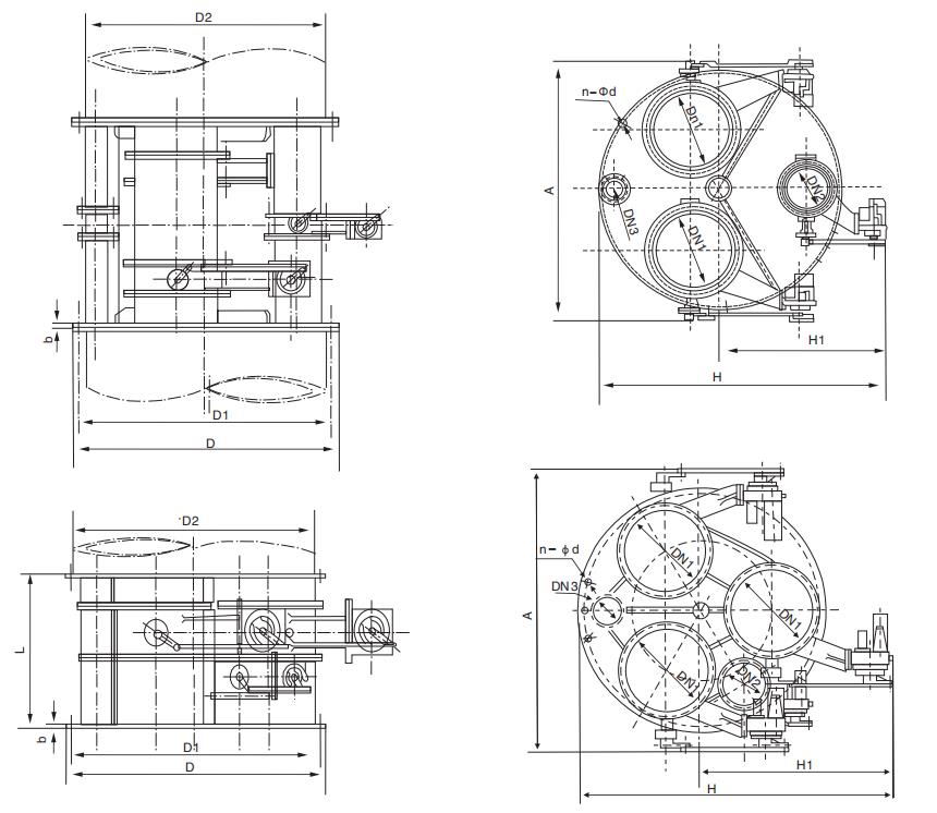 | model | D | D1 | L | b | n-Φd | A | A1 | Η | H1 | Valve preparation | Allowable traffic (m3 / h) | Weight (kg) | Corresponding to the pipeline |