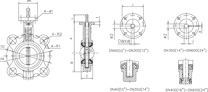 | 6 | Butterfly plate | WCB | ZG1Cr18Ni12Mo2Ti | ZG1Cr18Ni12Mo2Ti | 16 | filler | PTFE. Flexible graphite | ||